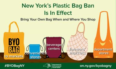 State encourages New Yorkers to #BYOBagNY as the DEC announces the enforcement of the New York Plastic Bag Ban beginning October 19th, 2020. Details of the announcement can be found here: https://www.dec.ny.gov/press/121415.html