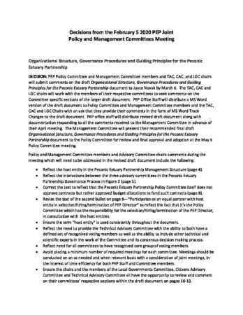 Decisions from the February 5 2020 PEP Joint Policy and Management Committee meeting_