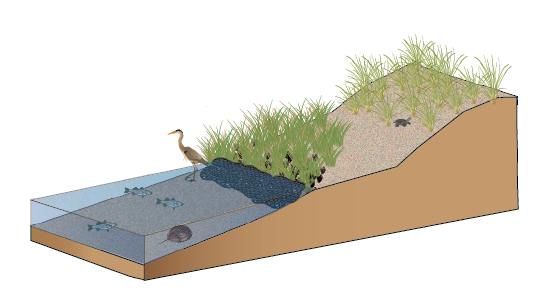 Creation of habitat and nursery grounds for wildlife and native marsh plants, which in turn supports fisheries, recreation, and tourism.