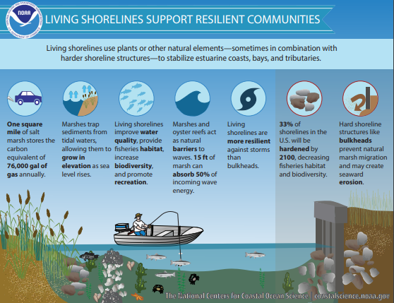 A comparison of living and hardened shorelines. Image from NOAA.