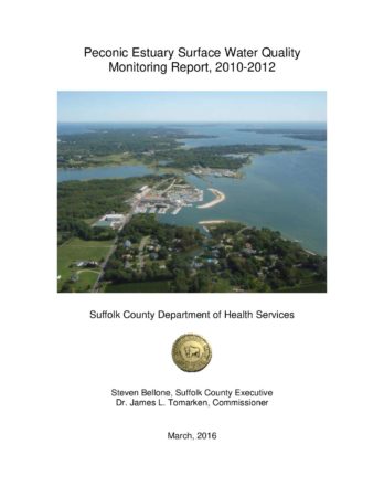 This report describes trends in water quality at 64 marine, stream and point source locations in the Peconic Estuary that were monitored from 2010 through 2012 by staff from the Suffolk County Department of Health Services, Office of Ecology (Bureau of Marine Resources). Basic descriptive statistics and graphics depicting spatial and temporal variations provided the basis for the analysis. Sampling results for the prior two decades (1990-1999 and 2000-2009) were also examined to provide some context for the 2010-2012 data.