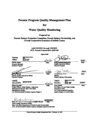 A NYSDEC and EPA approved Quality Assurance Management Plan (QAMP) and QAPP template for PEPC members to identify and prioritize subwatersheds in the Peconic Estuary that should be targeted for water quality improvement activities.