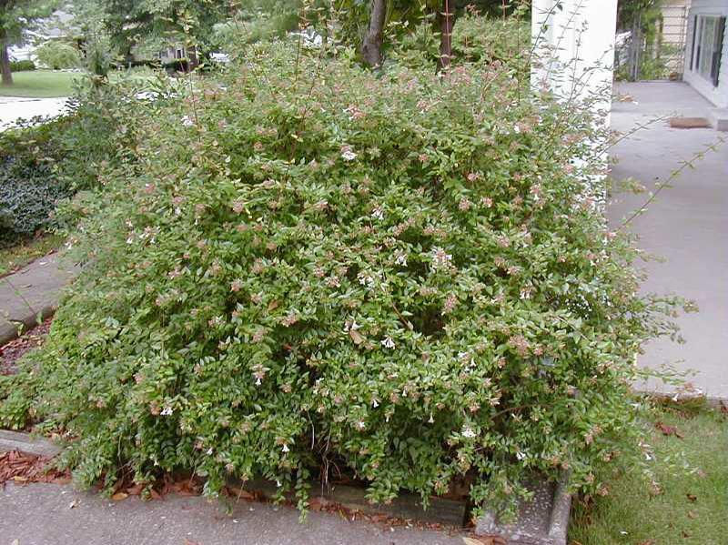 Glossy Abelia is a semi-deciduous, multi-stemmed shrub with graceful, arching branches. Fragrant, bell-shaped, white or pink flowers bloom May-September. The dark green leaves turn an attractive dark purple in the fall. Use this plant as a specimen or in mass plantings. It can also be used as a screen or hedge, and is effective for erosion control on steep slopes. Glossy Abelia is susceptible to stem damage during harsh winters, so consider planting it in protected locations.
