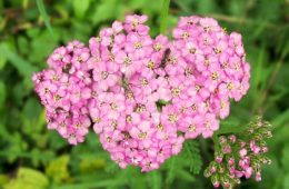 Yarrow is a flowering perennial with fragrant, fine-textured leaves. Tiny flowers are clustered together in flat displays, layered on top of stems. Depending on the variety, flowers bloom in many colors, June-September. Yarrow is easily grown in average, well-drained soil, and is drought-tolerant once established. This plant can spread through rhizomes and self-seeding, and should be divided as needed. Best used in wildflower gardens, meadows, and naturalized areas.