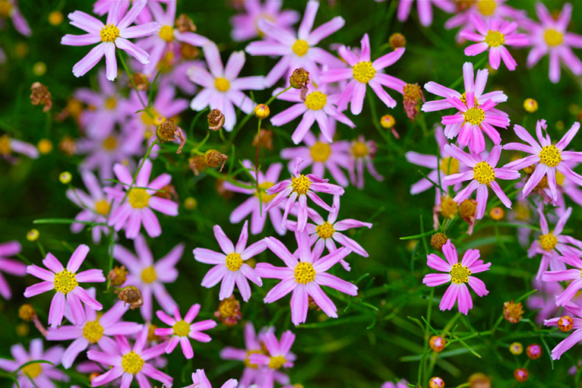 Pink Tickseed is a multi-stemmed, clumping perennial with dense, green foliage. Small, pink-purple, daisy-like flowers with yellow centers are scattered within the vegetation. It blooms all summer, June-September. The native habitat of Pink Tickseed consists of wet, sandy soils. It needs consistent moisture and does not tolerate clay soils. It may self-seed to form a dense groundcover. Use Pink Tickseed in borders, along walkways, in your native plant garden, and in moist meadows.