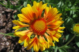 Blanket Flower has daisy-like, tri-colored flowers with yellow-orange petals and dark red centers. It has a long bloom time, from June-September, and makes an excellent cut flower. Butterflies benefit from the nectar, and finches eat the dried seeds. Blanket Flower prefers moist soil, but will tolerate some drought. Use in borders, cutting gardens, or mixed container plantings.