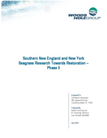 The overarching goal of the Seagrass Initiative is to identify the genetic diversity of eelgrass throughout Southern New England and New York, improve understanding of the interactive effects of multiple stressors on eelgrass, and apply this information to inform and promote enabling conditions for healthy seagrass meadows and other important estuarine habitats. The objective of this phase (Phase II) is to collect and augment site-specific data on nitrogen loads, benthic conditions, historical extent of seagrass habitats, and predict how future conditions (effects of nitrogen loads and climate change) may influence, and guide, protection and restoration strategies in long-term planning.