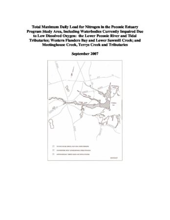 This report describes the 2007 Total Maximum Daily Load for Nitrogen in the Peconic Estuary Program Study Area, including waterbodies currently [2007] impaired due to low dissolved oxygen: the Lower Peconic River and Tidal Tributaries, Western Flanders Bay and Lower Sawmill Creek, and Meetinghouse Creek, Terry’s Creek, and Tributaries. This includes the implementation plan for the TMDL.