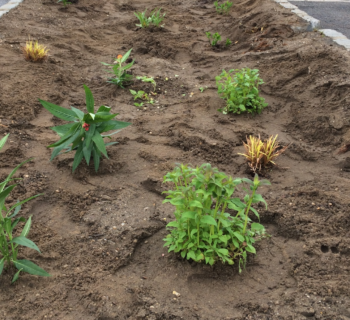 Freshly planted plants at the Peconic Estuary Partnership Riverhead Rain Garden.Poor soil health results in increased impermeable surfaces, increased stormwater runoff, diversions and man-made waterways, which ultimately leads to higher pollution loads into our surface water bodies.